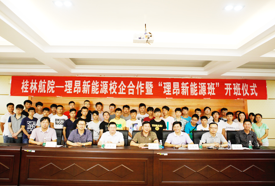 8月30日上午,陽光普照,秋高氣爽。理昂新能源股份有限公司與桂林航天工業(yè)學(xué)院校企合作簽約儀式暨“理昂新能源班”開班儀式在該院飛天樓隆重舉行。公司總經(jīng)理郭振軍、桂林航天工業(yè)學(xué)院黨委副書記羅延忠教授、能源與建筑環(huán)境學(xué)院院長王斌武等領(lǐng)導(dǎo),以及2013級“理昂新能源班”全體學(xué)生、輔導(dǎo)員、班主任共計43人出席了儀式。儀式由該校教務(wù)處長蘇慶勇教授主持。